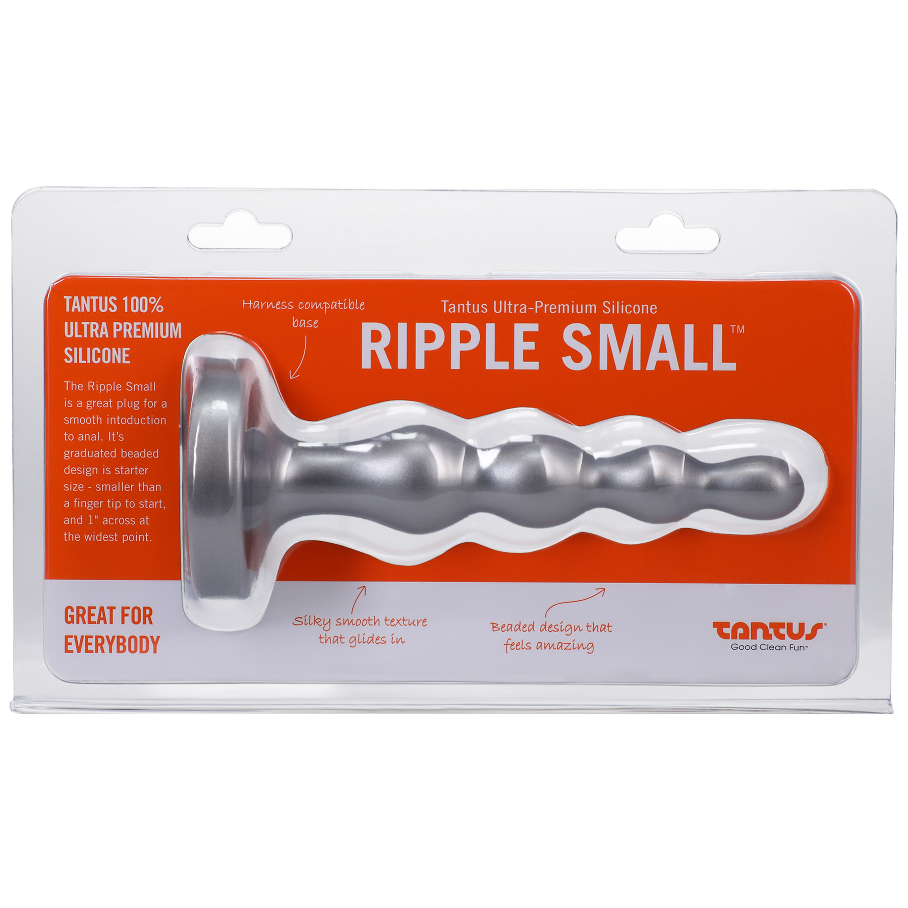 The Ripple Small is a great first plug. Its graduated design is starter size – smaller than a finger tip to start, and 1″ across at the widest point.